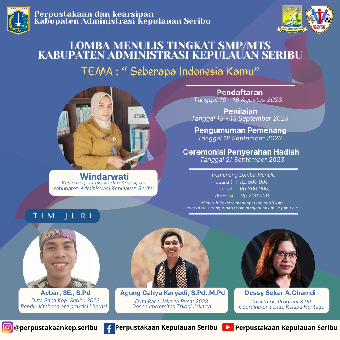 Sebanyak 22 peserta ikut terlibat dalam kegiatan lomba menulis cerpen yang diselenggarakan Unit Kerja Teknis (UKT) 1 Kabupaten Kepulauan Seribu mel ..
