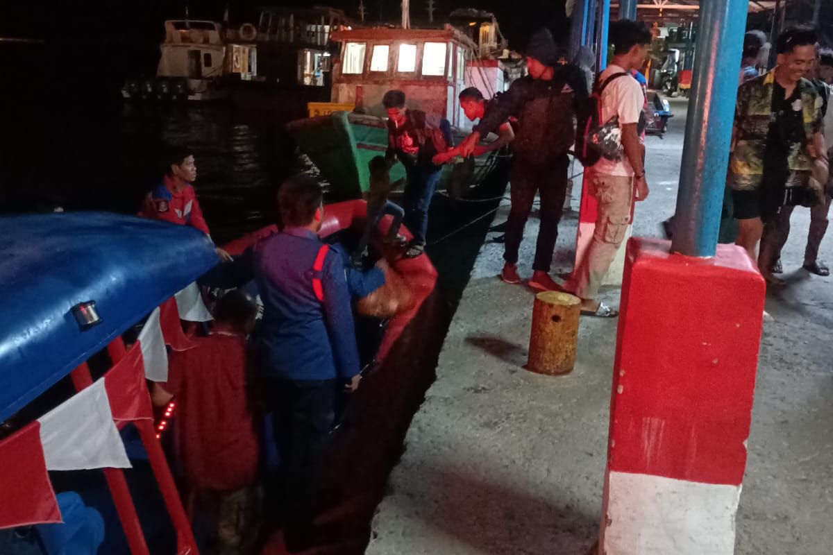 Petugas Suku Dinas Penanggulangan Kebakaran dan Penyelamatan (Sudin Gulkarmat) Jakarta Utara dan Kepulauan Seribu, berhasil mengevakuasi penumpang ..