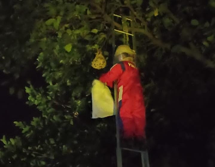 Petugas Suku Dinas Penanggulangan Kebakaran dan Penyelamatan (Sudin Gulkarmat) Jakarta Utara dan Kepulauan Seribu, berhasil mengevakuasi sarang taw ..