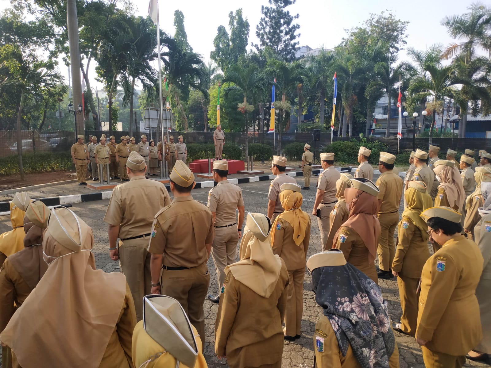 Asisten Pemerintahan dan Kesejahteraan Rakyat (Aspemkesra) Kabupaten Kepulauan Seribu, Alawi memimpin Apel Pagi Pegawai di Halaman Gedung Mitra Pra ..