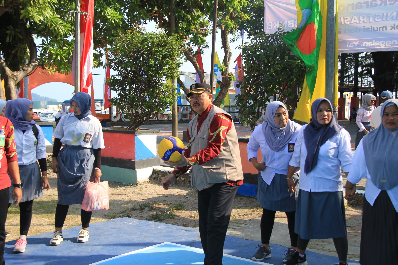 Asisten Pemerintahan dan Kesejahteraan Rakyat (Aspemkesra) Kabupaten Administrasi Kepulauan Seribu, H. Alawi membuka turnamen bola voli antar Tim P ..