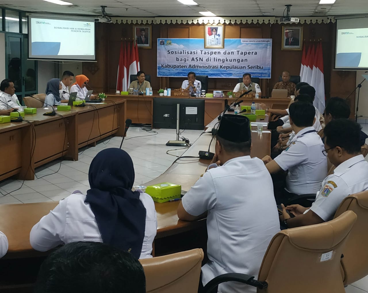 Sekitar 60 Aparatur Sipil Negara (ASN) Kabupaten Kepulauan Seribu mengikuti sosialisasi Tabungan Asuransi Pegawai Negeri (Taspen) dan Tabungan Peru ..