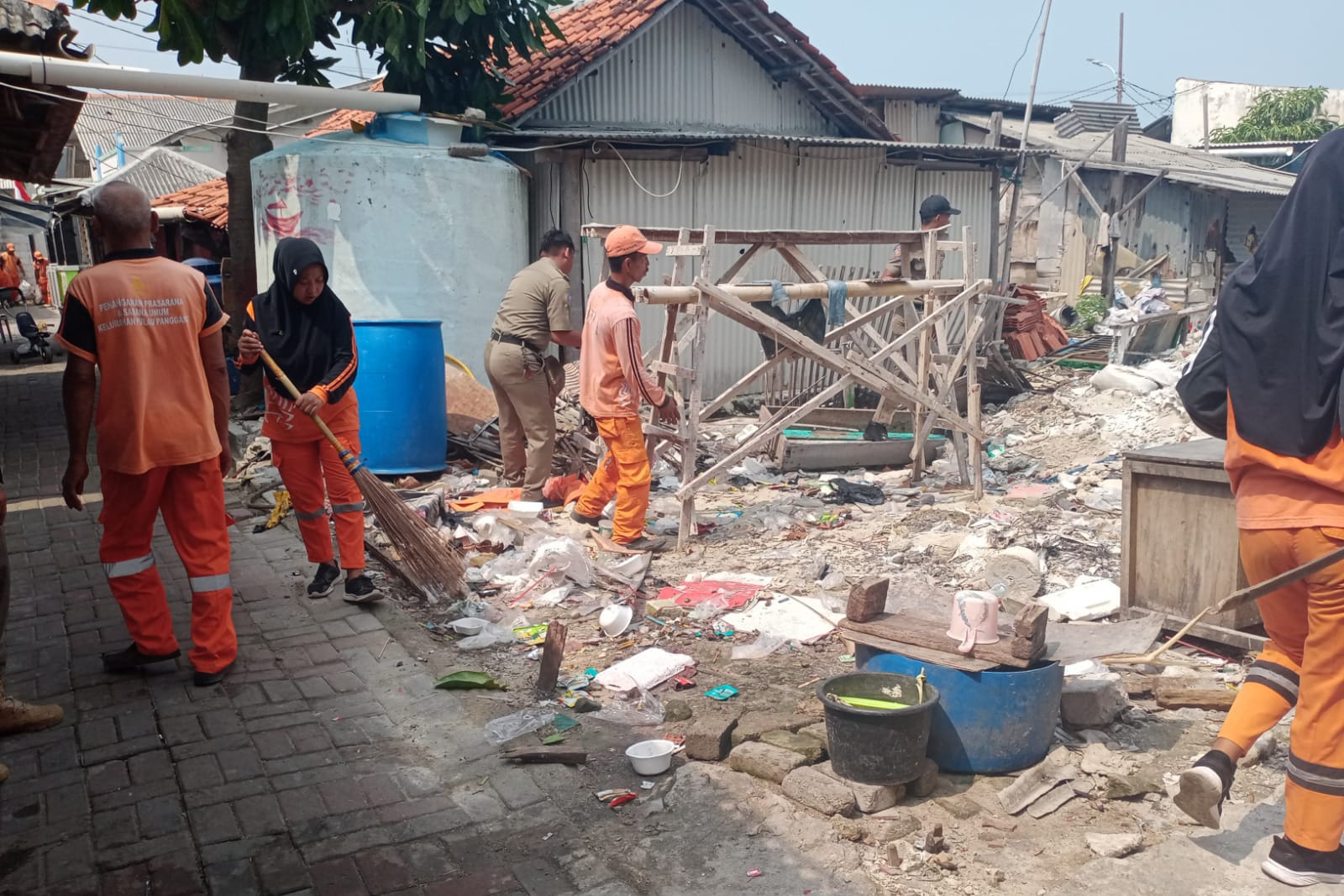 Dalam upaya penataan wilayah, petugas gabungan Kelurahan Pulau Panggang, Kecamatan Kepulauan Seribu Utara melakukan kegiatan kerja bakti di tiga RW ..
