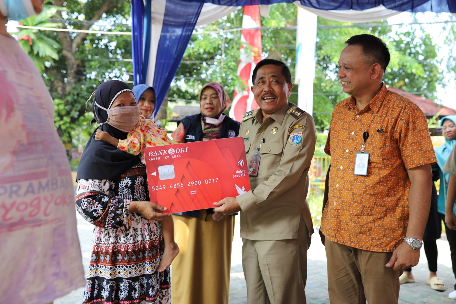 Kabupaten Kepulauan Seribu bersama Dinas Sosial Provinsi DKI Jakarta mendistribusikan bantuan sosial secara seremonial di Kantor Kelurahan Pulau Ti ..