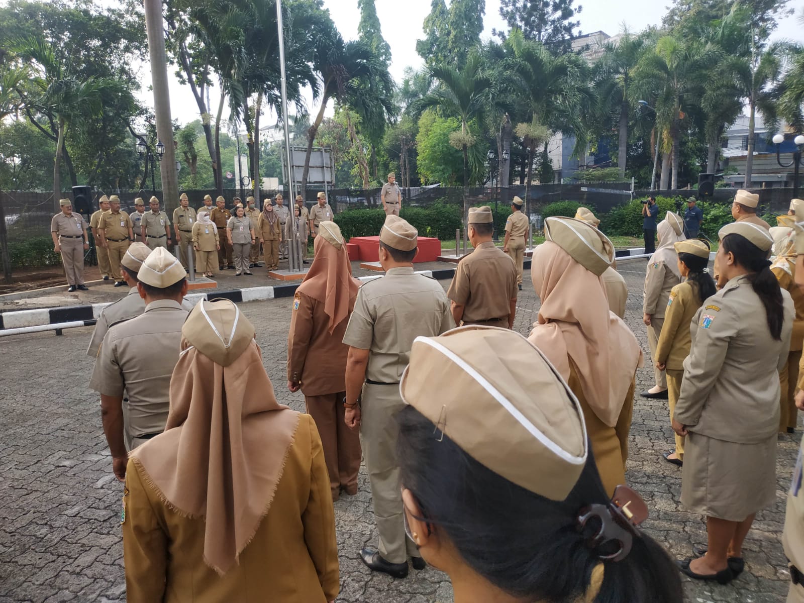 Wakil Bupati Kepulauan Seribu, Muhammad Fadjar Churniawan memimpin Apel Pagi Pegawai di halaman Gedung Mitra Praja, Jakarta, Senin (03/07/2023).
