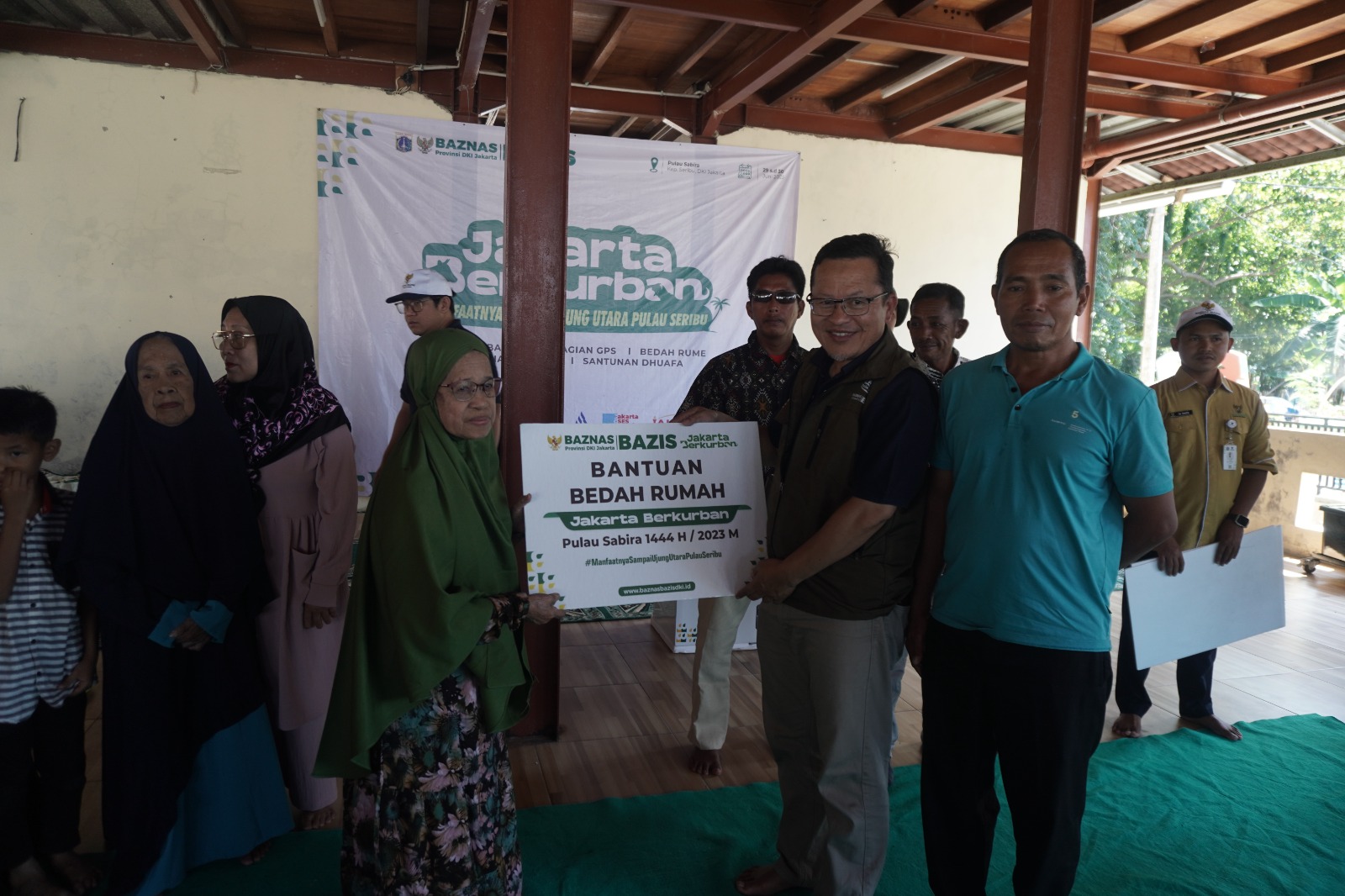 Baznas Bazis Provinsi DKI Jakarta menyalurkan bantuan Iduladha 1444 H kepada warga Pulau Sabira, Kelurahan Pulau Harapan, Kecamatan Kepulauan Serib ..