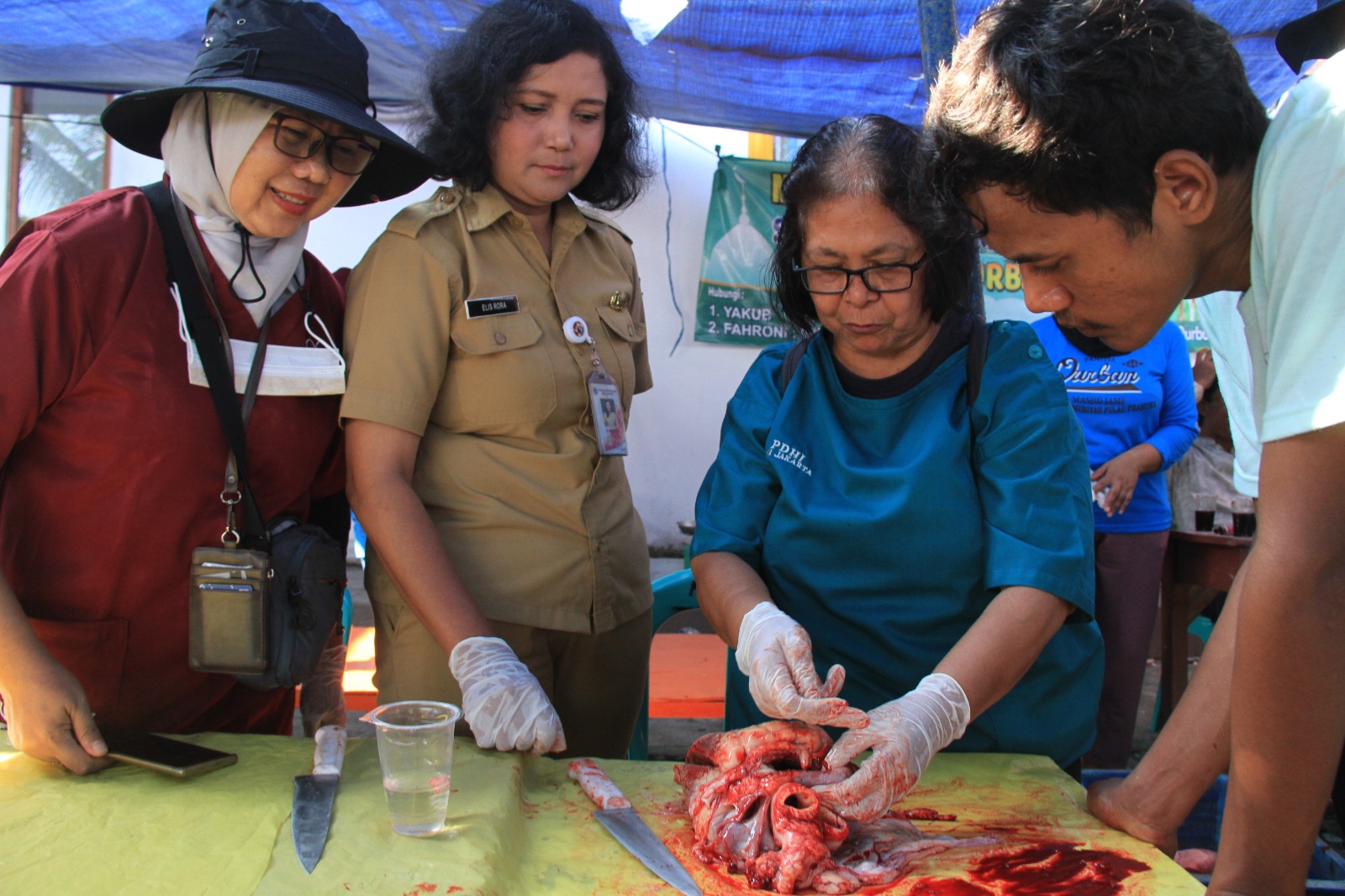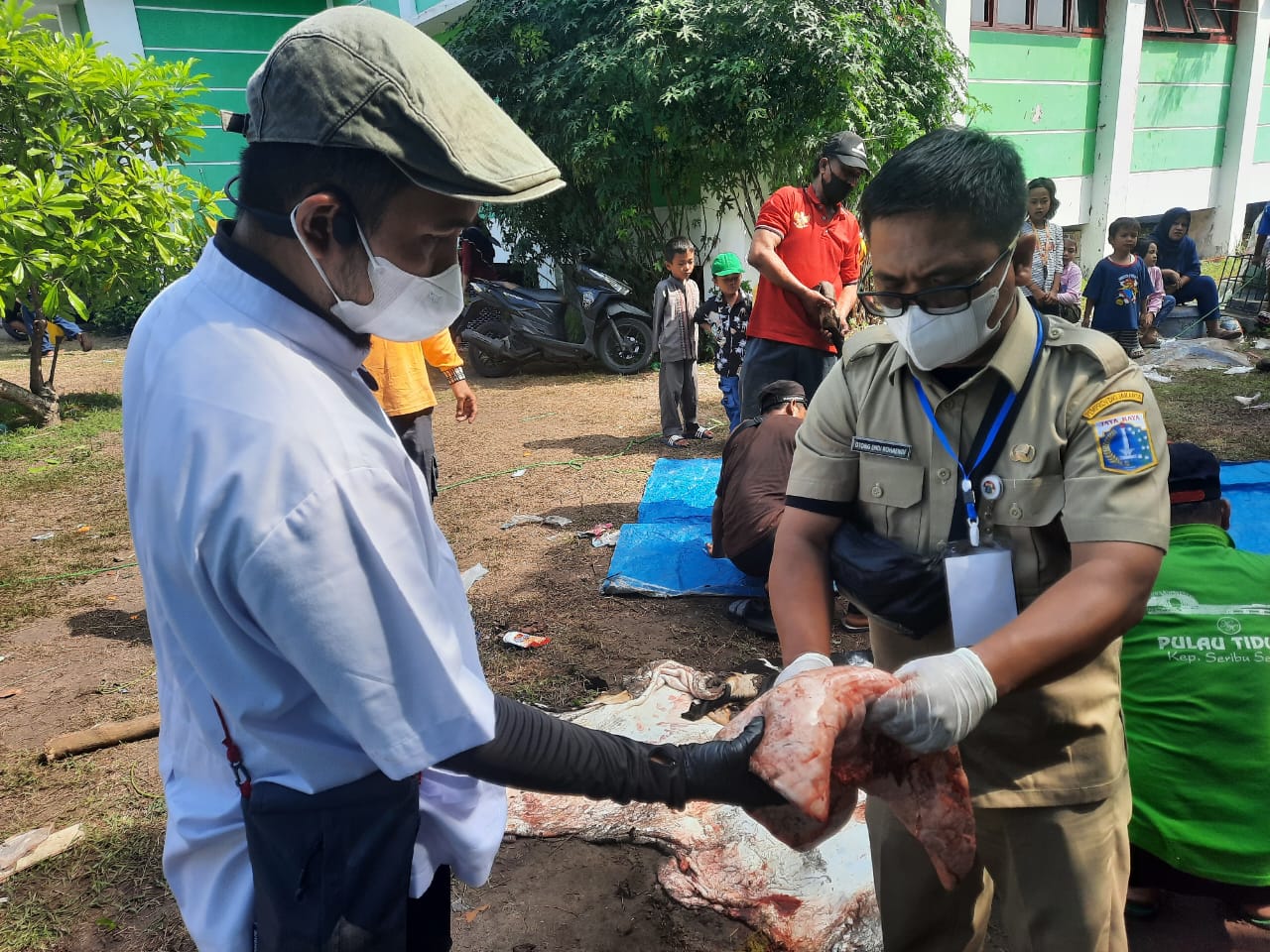 Suku Dinas (Sudin) Ketahanan Pangan, Kelautan dan Pertanian (KPKP) Kepulauan Seribu, melakukan pemeriksaan daging kurban di enam kelurahan, pada Ha ..