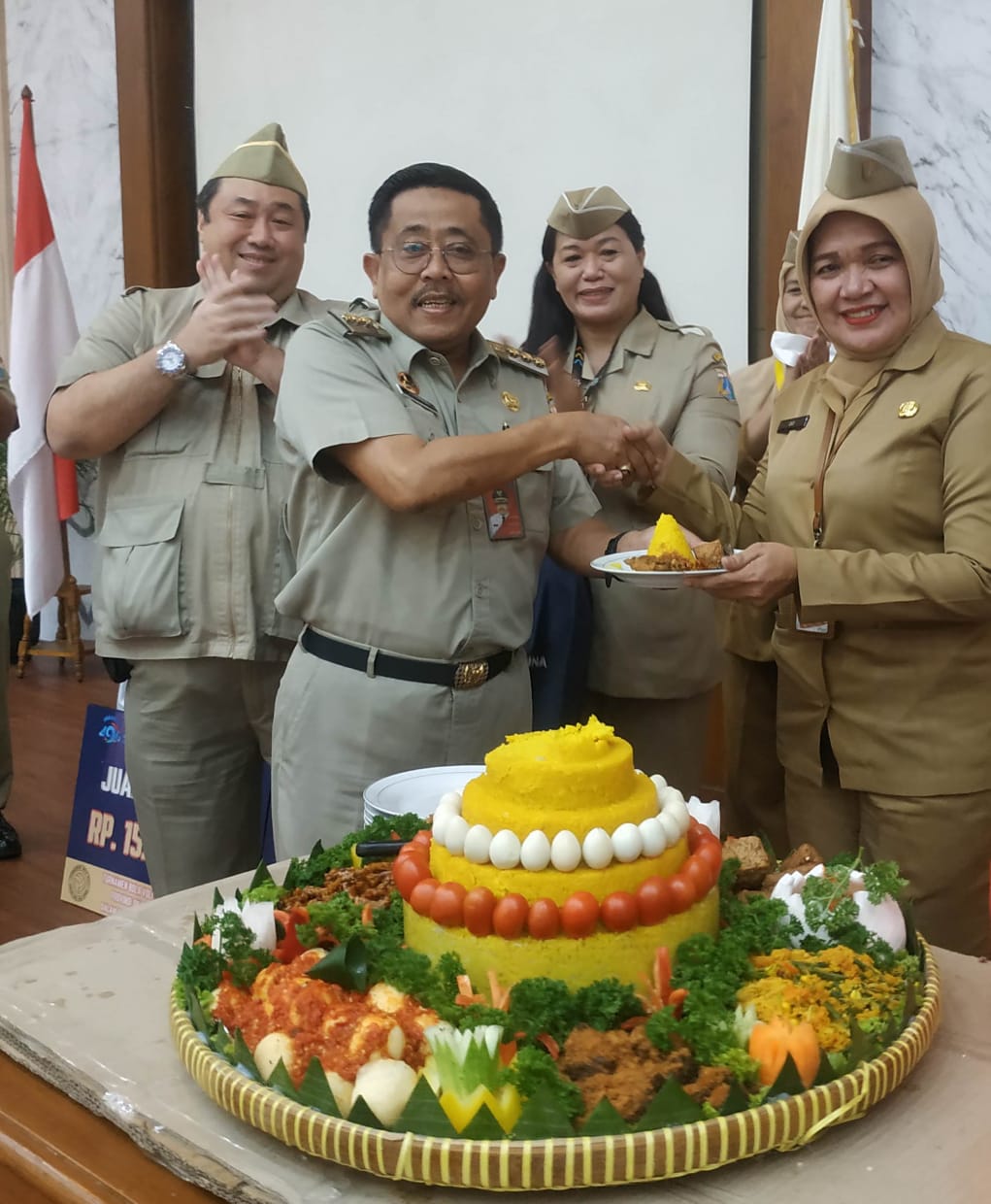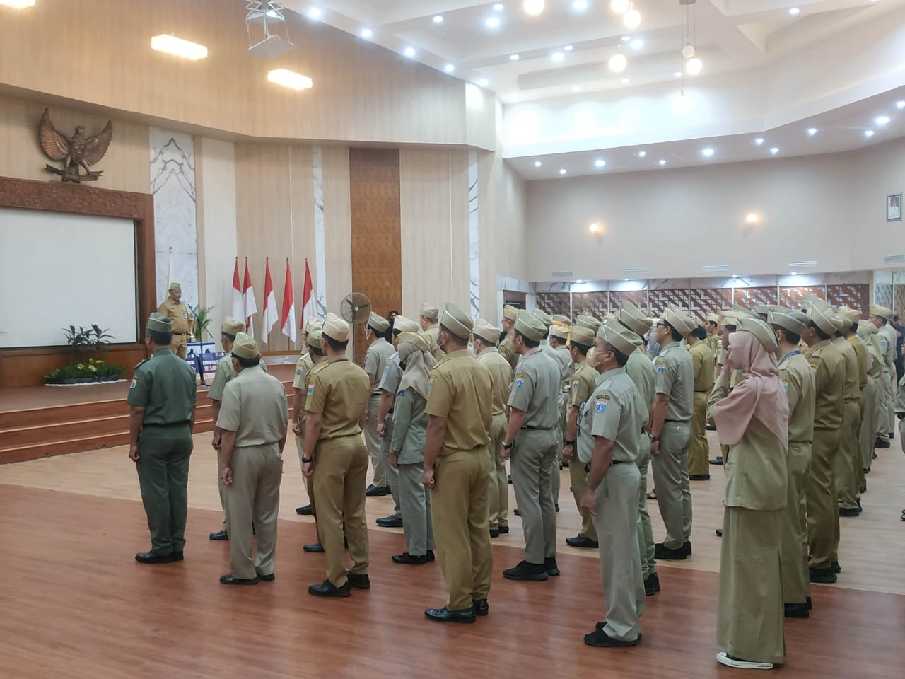 Asisten Administrasi Ekonomi dan Pembangunan (Asminekbang) Kepulauan Seribu, Iwan Samosir memimpin Apel Pagi Pegawai di Ruang Penyu, Gedung Mitra P ..