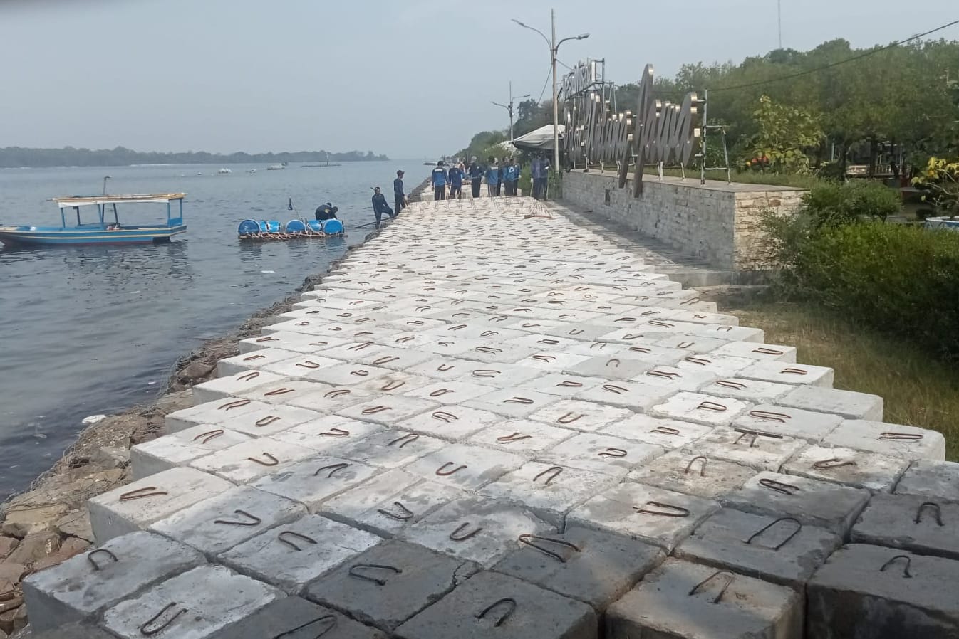 Suku Dinas Sumber Daya Air (Sudin SDA) Kepulauan Seribu, meninggikan tanggul di sepuluh pulau penduduk, sebagai upaya untuk mengantisipasi an ..