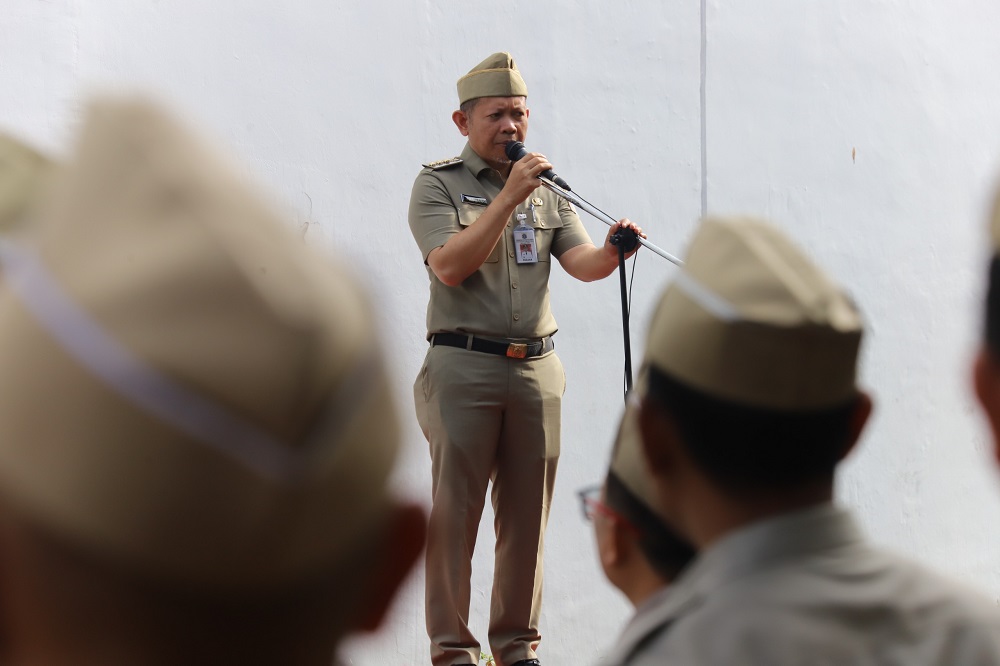 Bupati Kepulauan Seribu, Muhammad Fadjar Churniawan, memimpin langsung Apel Pagi Pegawai yang digelar di halaman Gedung Mitra Praja, Jakarta, Senin ..